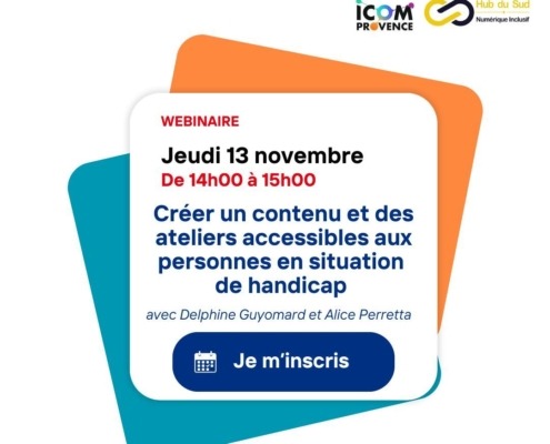 Le 13 novembre, le Hub du Sud a animé un webinaire autour de l'inclusion numérique des personnes en situation de handicap, Créer un contenu et des ateliers accessibles aux personnes en situation de handicap.